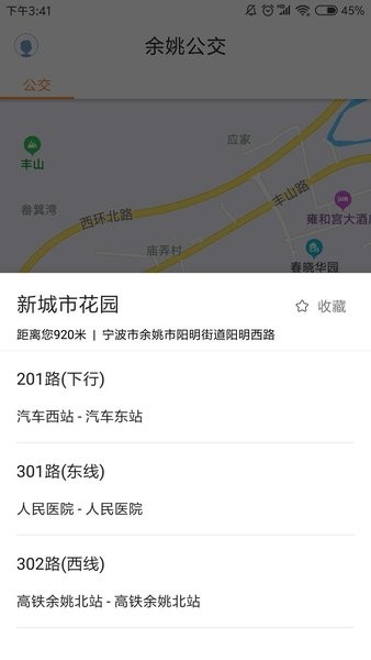 余姚市实时公交查询APP,可查找您附近的公交站点,公交发车时间,选择线路后将会显示离您近的2辆公交车。