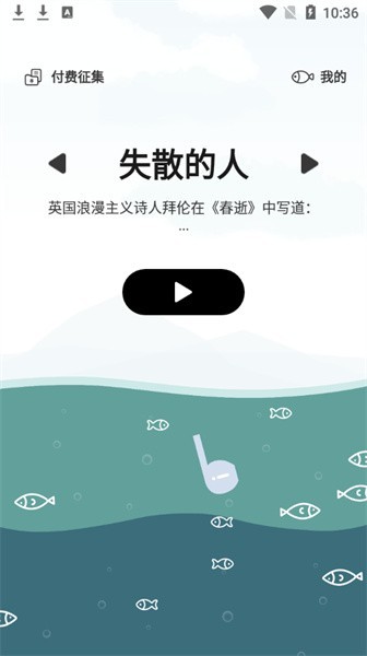 大鱼故事最新版是一款提供听书功能的故事阅读平台,界面清新简单,涵盖丰富的故事内容,精选推荐,支持在线记录,语音讲述,在线听书,个性化设置,聆听不同的故事人生,美好重现,回忆光阴,沉浸其中,带来不错的阅读体验!