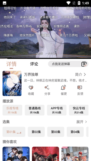 灵云动漫手机版是一个追漫神器,收录了很多国漫、日韩漫、动漫电影等等资源,想找什么都能轻松找到。它最大的优点就是不用会员不用登录就能看,想怎么看就怎么看,还支持在线收藏和分享给朋友家人,特别方便。