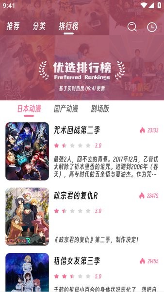优选排行榜,日本动漫、国产动漫、剧场版专属排行;