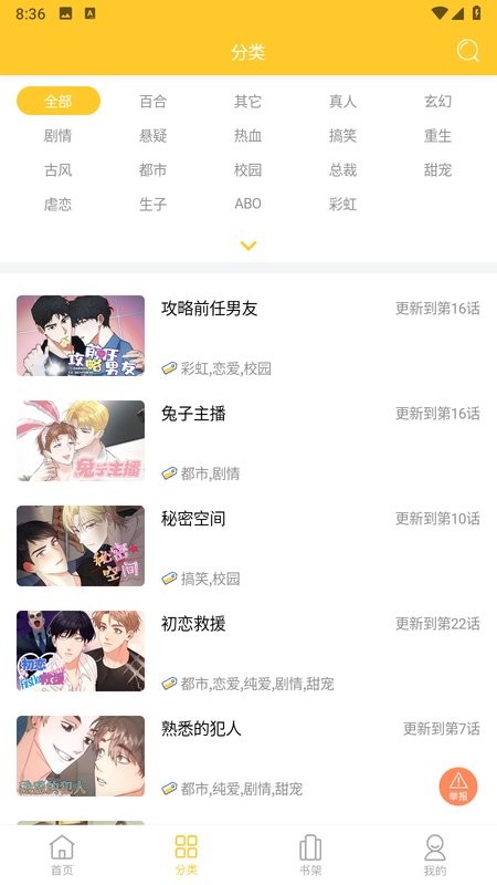 -- 一键收藏管理漫画,添加到书架,将喜欢看的漫画收藏起来,等更新后可以一个一个看