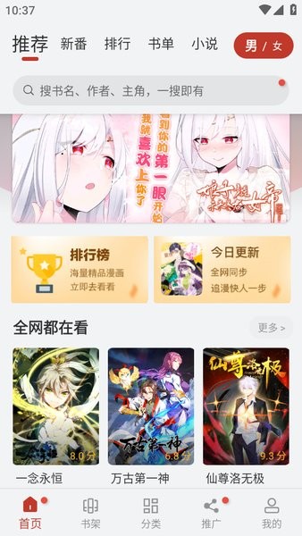 软件功能也超级强大。会自动记录你的阅读进度,每次打开就能直接继续看。还有各种排行榜单和推荐榜单,方便你找到喜欢的作品。特别是小说专区也很赞,完结榜、评分榜一应俱全,追更完全不费劲。