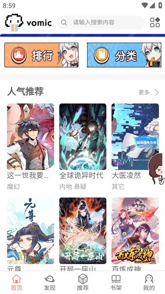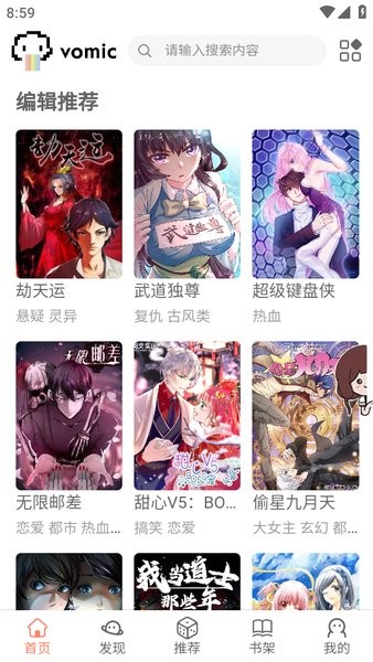 这款vomic有声漫免费app简直太棒了!界面超级干净,没有烦人的广告,看起来就舒服。它几乎涵盖了所有类型的漫画,国漫、日漫、韩漫、美漫都能找到,而且每天都有新作品更新。热门漫画直接推荐到首页,想追什么一目了然。