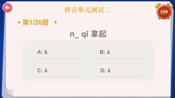 6、拼音练习:包括认拼音和听拼音练习,根据听到的拼音选择正确的拼音。