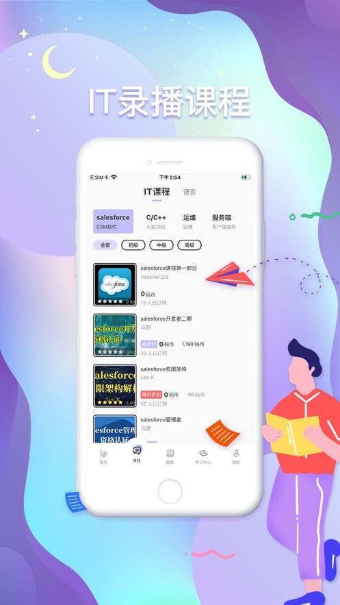 CoderBar码农吧app最新版主要提供it方面的职业培训服务,这里有免费课和vip课程,用户可以在线看直播课进行学习,不管你是有基础还是小白用户,这里都能找到你需要的课程,还有超多题库资源可供刷题巩固,能查看详细的已购直播和录播课程。