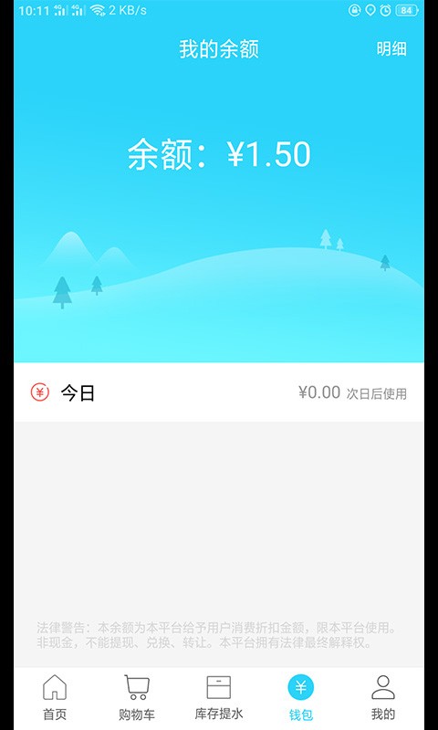 4.在app中可以对自己的余额进行充值,这样才可以在线完成支付;