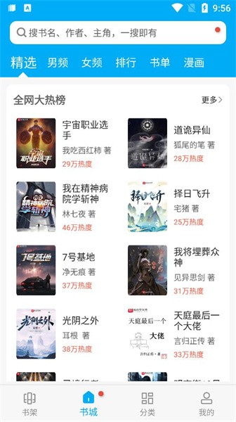 3、各种分类经典神作自由挑选,满足你的阅读兴趣;