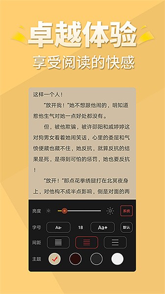 个性化阅读、全局夜间护眼模式、自定义阅读设置,操作简单,好看不伤眼!