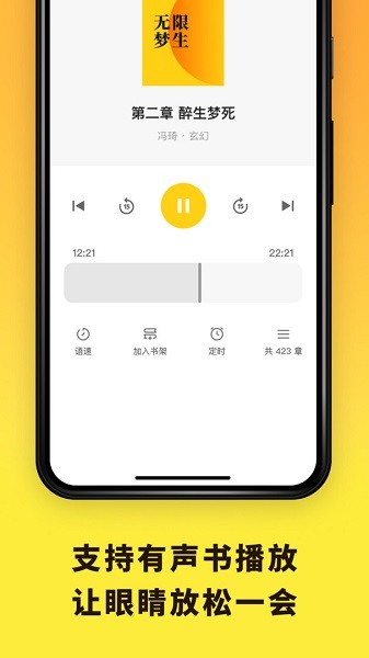 支持有声书源播放,简洁优雅的播放操控感受,让眼睛放松一会。