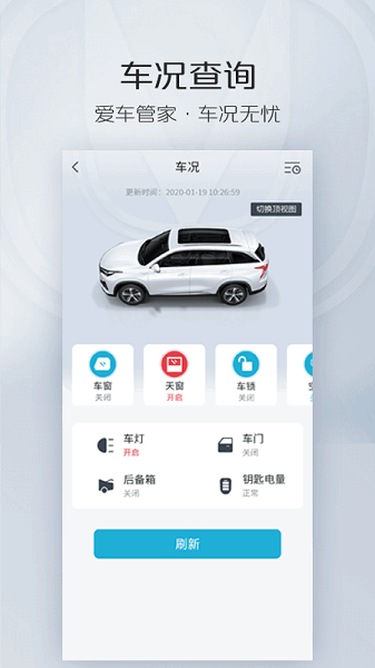 支持手机APP对车辆进行远程控制:如解闭锁、开闭天窗、开关空调、闪灯鸣笛寻车等。