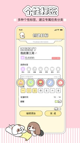 以“周“为概念,记录待办事项、分配类型做计划、管理日程的效率类应用,《米卡日常》中可爱的小狗陪你在点滴中进步,做计划原来也能如此有趣,变优秀也更加轻松简单。