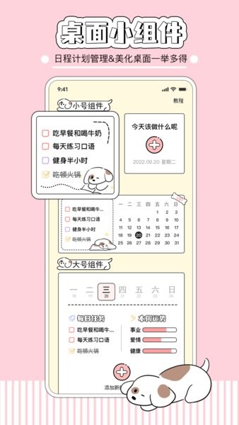 丰富可爱的桌面小组件,支持多种大小和样式。让日程管理也加入你的手机美化,展示计划&美化桌面一举多得!