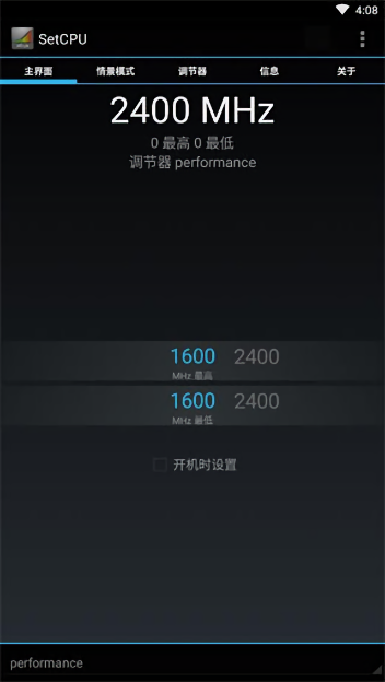 setcpu最新汉化版是有关安卓手机的cpu超频工具。软件体积十分小巧,不占用内存,界面设计也比较简单,提供多种模式,随你自由设置调节,改编不同的cpu频率,了解详细的cpu信息,还支持对款主题,操作简单易上手,让你轻松控制手机cpu!
