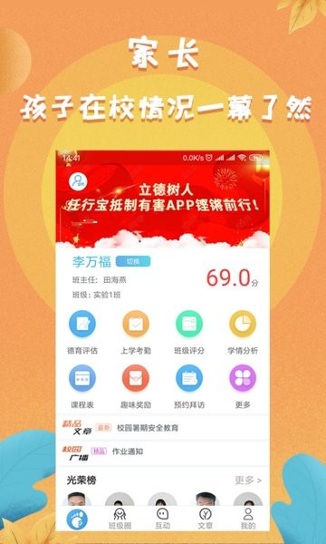 任行宝德育管理系统可以为用户带来更多的德育评估管理,通过软件让家长和老师随时都可以关注学生在校园的学习考勤状况,还可以轻松的管理学生在学校的德育信息。