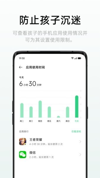可以查看被守护者的用机时长,而且可以对其用机的时长进行设置,避免家里小孩沉迷游戏。