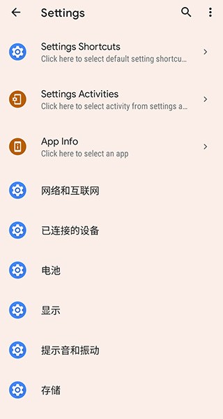 3、设置:创建android系统设置的快捷方式以及默认应用程序。
