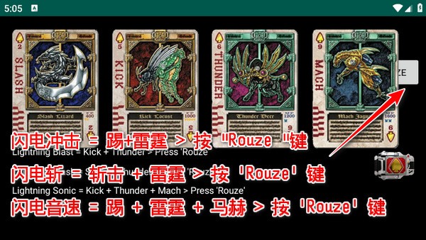 闪电音速 =飞踢蝗虫+ 雷电鹿+马赫美洲豹 > 按"Rouze "键