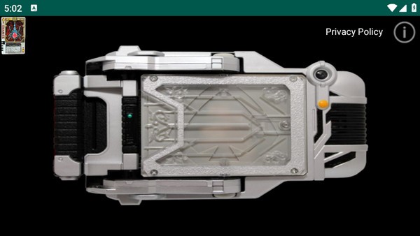 3、在此点击,将卡牌插入变身器!可以听到和原剧中一模一样的变身音效。音效结束后在此点击腰带,可以合上盖子,此时也有特殊音效
