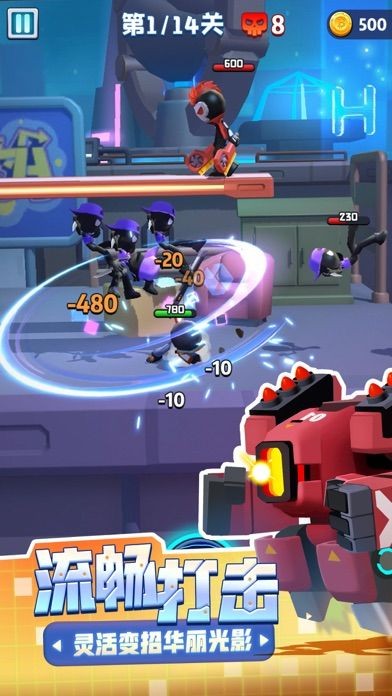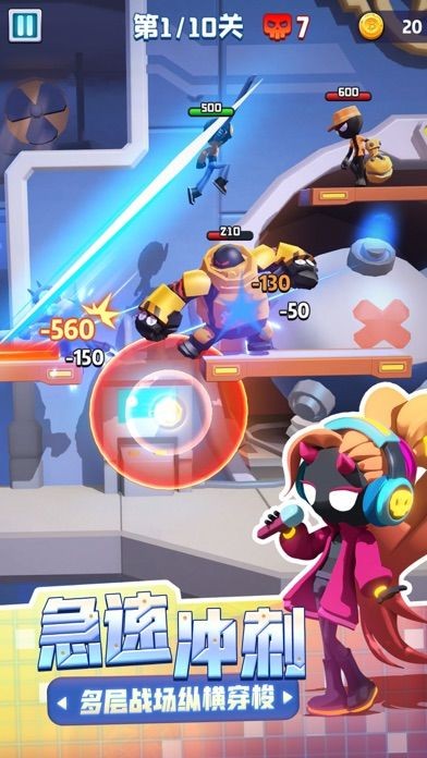 2、在点击之间施展流畅打击,在滑动之下自由纵横翻飞,考验玩家们的敏捷操作