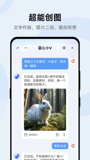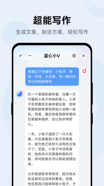 蓝心小v最新版是一款vivo手机全新上线的ai智能助手工具,具备强大的功能,集智能识别、灵敏浮窗、智能交互、超能问答、超能写作、语义搜索、超能创图等功能为一体,随时随地进行语音对话,搜索解答,适用于多种场景,简单又方便!