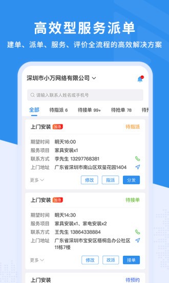 接单:支持短信通知接单,语音通知接单、app通知提醒、电话通知接单等多种通知接单模式,让工单不再遗漏。