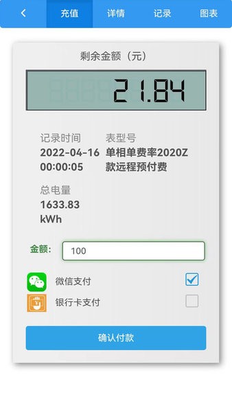 图表功能展示电能量数据和剩余金额以及曲线图,可形象地看出变化的趋势。