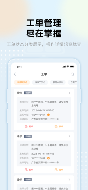 -- 该应用以其直观易用的界面设计,让用户能够轻松上手,无论是项目进度的跟踪、订单状态的查询,还是用户信息的维护,都能一键完成,极大地提升了管理效率。
