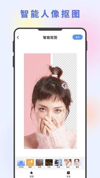 一款简单实用的图片编辑神器,一键人像抠图,无须任何P图技巧,简单几步,手机也能抠出完美效果;自动抠图、照片编辑、图片美化、PS软件、图片处理等让你秒变P图大神,加上喜欢的素材,配上喜欢的文字,让你的图片更有创造力。