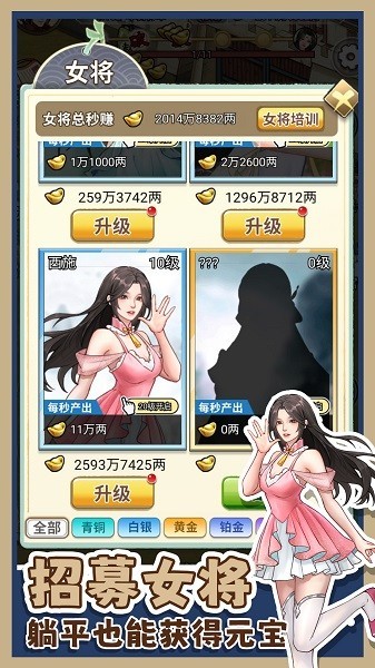 吕布的逆袭小游戏是全新设计的三国策略挑战游戏,各种女将可以招募培养,放置升级,挑战擂台,大量士兵随你排兵布阵,驰骋沙场,海量元宝点击就送,还提供幽默问答,直戳灵魂深处,操作简单易上手,带你体验不一样的三国乐趣!
