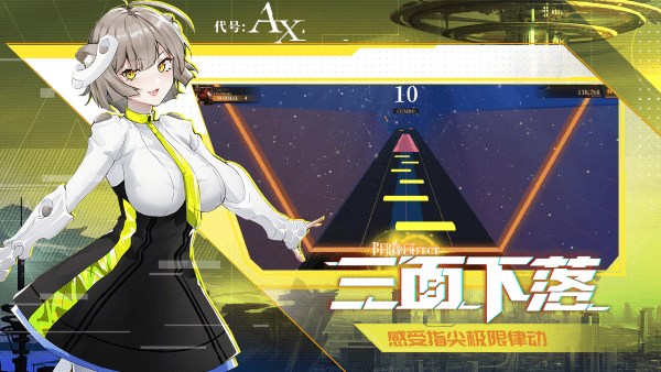 代号ax手游是由独立游戏工作室GlaciaStudio开发制作的的全新下落式音游,本游戏以三面多轨道下落和交互为主要玩法,具有独特风格的原创电子乐,并辅以丰富的剧情和人物系统,希望能给大家带来不一样的体验!
