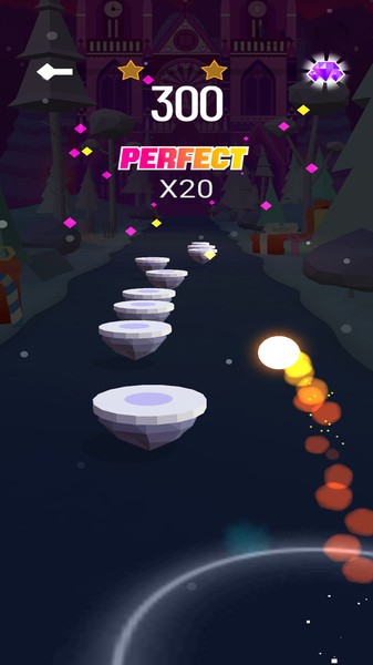 2、玩家通过控制音乐球在音乐台阶上跟着节奏不断向前跳跃,注意哦。