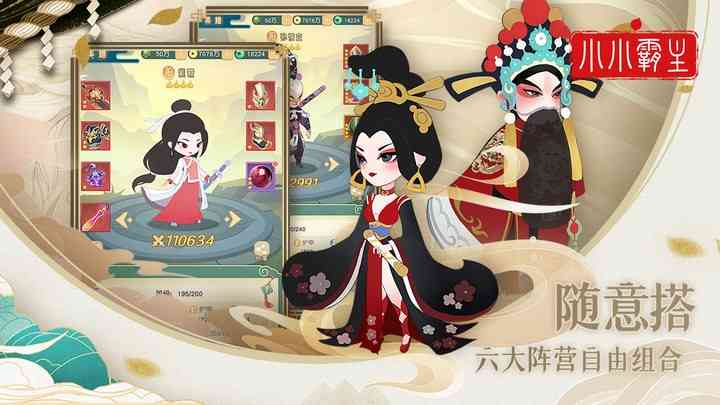 《小小霸主手游》融合了中国国粹艺术京剧等多种曲目中经典的造型,生旦净末丑样样俱全,加以现代化的Q版设计,角色清新脱俗,在小小霸主的世界中,玩家可以招募到多种多样的中国曲艺角色,受到了众多年轻人的追捧喜爱,当下国潮兴起,国风盛行,在中国进行伟大复兴的历史潮流中,这款游戏极大的贴合了玩家们的国风情怀,融合轻度的放置养成玩法,是可以揣在口袋里的精致文化盛宴。