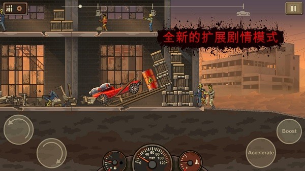给大家提供更多的关卡选择,不同的选择意味着不同的冒险环境,也有着不同特色的僵尸,总之一路困难重重,能否突破重围就看你的车技了;