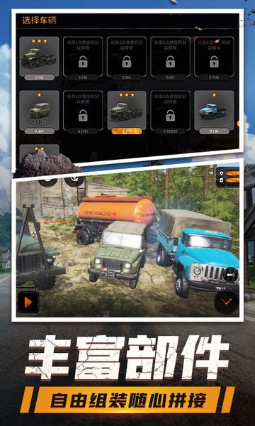2、完整的地图,沼泽区域,山区道路,升级的汽车,发动机,悬架,轮胎,四轮驱动等。更好的性能是关键。