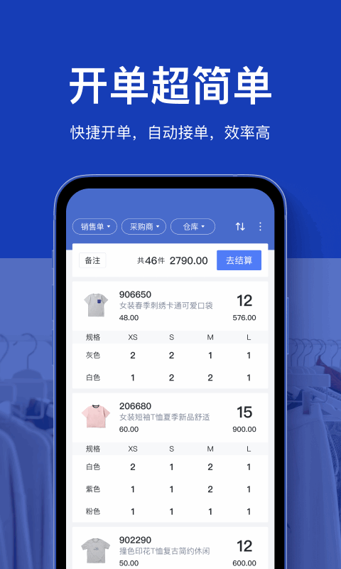 -- 客户推单,一键开单配货;手动开单,减少档口工作量