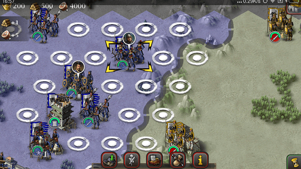 1.采用回合制对战玩法,进入游戏可以选择不同的势力,不同的势力对应不同的城池和资源。