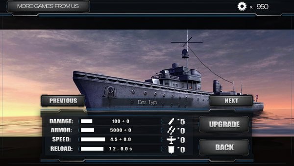 以完成每个任务之间的良好平衡。通过下沉的敌人,提升自己的战斗力,扩大自己的海军,海军升级武器的规模,购买更先进的船只。你将扮演一个不同的战列舰,巡洋舰或驱逐舰,参加最新的战斗!
