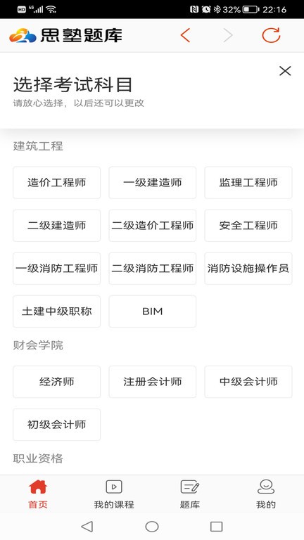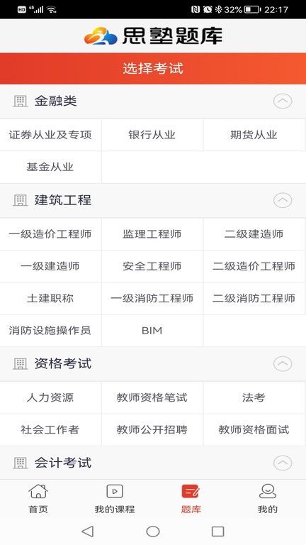 思塾题库app最新版包含了丰富的考证学习资源,科目覆盖广,用户在选择好需要考试的证书类别以后就可以开始学习课程和做题了,有非常详细的考试相关指导,教材丰富,有详细的考试、打印以及查分时间说明,考证不迷茫。