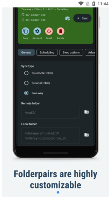 它还有一些高级功能,比如双向同步,支持删除操作,还能设置同步过滤器,过滤掉不需要的文件。另外,它还支持手动同步,可以创建快捷方式或小部件,方便快速操作。对于每个文件夹对,你还可以选择不同的连接类型和同步间隔,甚至能禁用隐藏文件或者子文件夹的同步。
