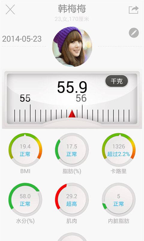 操作界面非常的简单,您就能了解自己的各项体脂信息;