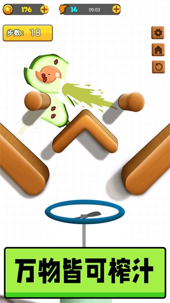 1、爽快的休闲切割玩法,将所有的水果全部切片,果汁四溅看着十分眼馋;