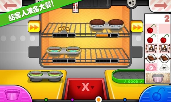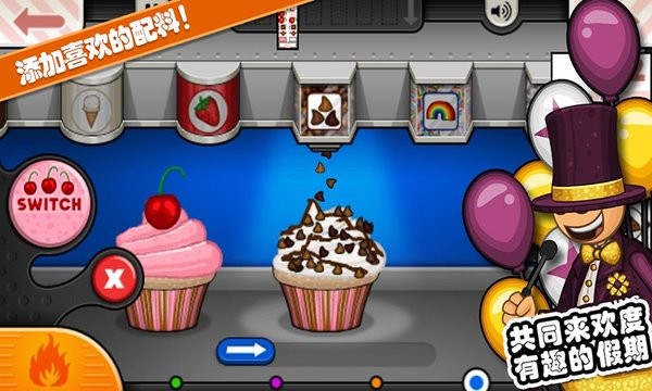 移动到烘烤平台把蛋糕放入烤箱,等待他们烤。跳转到build站添加结霜的蛋糕,并与各种振动筛,细雨,和节日排行榜装点他们。
