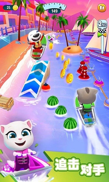 不过刚开始玩的时候有点手忙脚乱,得慢慢练习才能掌握技巧。总的来说,这款游戏既解压又有趣,特别适合闲暇时间打发一下。如果你喜欢水上摩托艇或者汤姆猫系列,绝对值得一试!