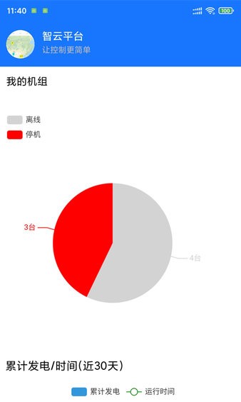 智云平台app最新版软件能够在手机上查看和管理设备,运行状态一目了然,运行、停机、离线一看便知,能在手机上查收最新的报警信息,有非常详细的地图,会以图表的形式来展示机组机器的运行以及发电情况。