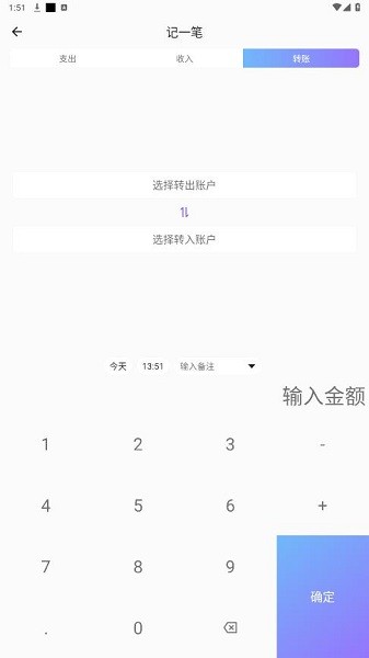 -- 新增账单记录的时候,可以选择三种不同的类型,支出和收入大家都比较熟悉了,绝大多数记账APP都会有这两项,而「那样记账」新增了一项特殊的记录转账,如果你有提前创建好账户的话,类似于从银行卡转账到余额宝这样的操作,就可以通过转账来实现了,这一点蛮实用的。