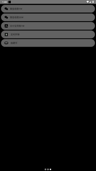 -- 继续向右滑动屏幕,可以模拟微信收款1w,30w,支付宝到账1w,定时炸弹,抛硬币的声音等