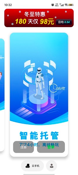 金牛云手机官方版是一款云手机托管挂机平台,支持7*24小时云端运行,全天候在线,支持批量管理,离线多开,数据云端存储,一键切换新机,还可以虚拟定位,免root,一键安装谷歌框架,随时随地精彩畅玩,操作简单,运行稳定流畅,多端互通!