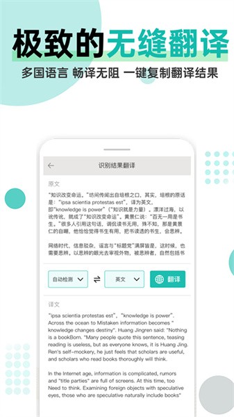 文字识别扫描app是非常好用的一款帮助用户们快速的识别各种文字的手机软件,在这里用户们能够快速拍照扫描识别,还能够进行便捷的翻译,让用户们能够使用各种各样的文字信息,超级的好用。