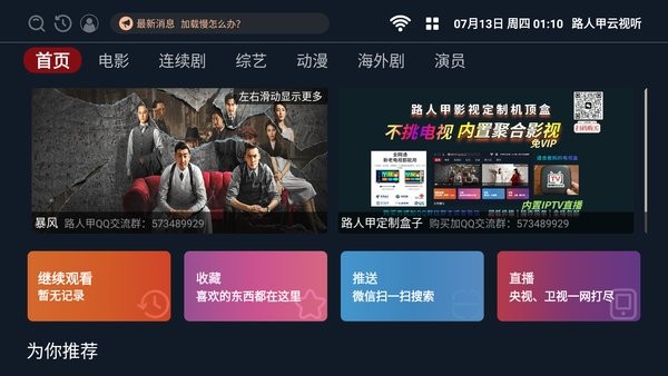 路人甲云视听app即路人甲影视电视版,不仅同步各大视频网站资源,还提供电视直播节目观看,不同频道自由选择,高清播放,多线路切换,一键快速搜索,支持hi全屏观看、加入收藏,还可以开通会员,发现更多精彩剧集,追剧停不下来,值得推荐!