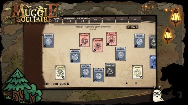 麻瓜接龙是一款以卡牌接龙为玩法的生存模拟游戏,玩家可以通过收集和堆叠不同类型的卡牌来获取食物、资源和建筑等东西,用来建设和发展自己的村庄。游戏中,你可以通过将“麻瓜”拖到植物上生产食物,比如葡萄、芒果或者其他东西,并把这些食物卖掉换取金币,然后用金币购买卡包,获得更多的卡牌资源,进一步拓展你的村庄。游戏的玩法非常丰富,包括各种奇遇、装备收集和对抗敌人等,而且还有独特的纸牌放置方式和开放的地图设计,让玩家可以在广袤的土地上进行试炼,提升自己的修为和等级。